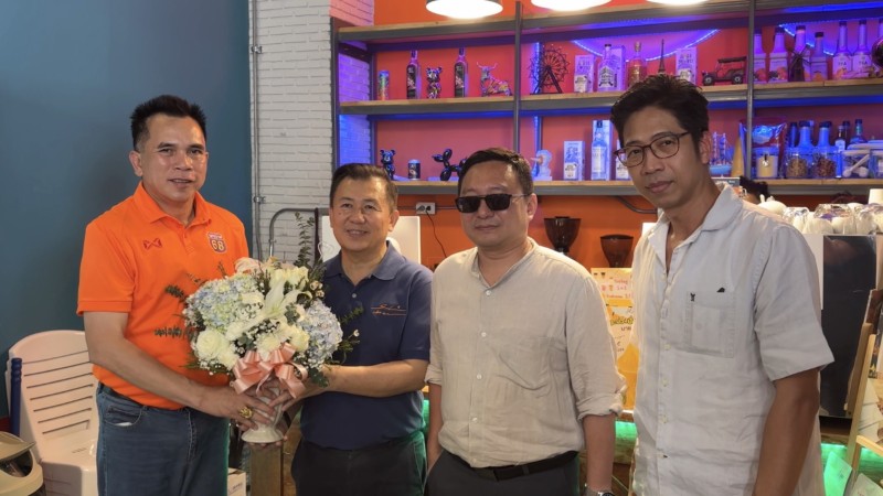 วันที่ 20 เม.ย. 67 ที่ร้าน "โซลบาร์นนทบุรี ปากเกร็ด" ต.ปากเกร็ด อ.ปากเกร็ด จ.นนทบุรี พบว่าวันนี้มีงานเปิดตัวร้านคาเฟ่ Grand Opening "โซลบาร์นนทบุรี ปากเกร็ด" ร่วมด้วยแขกคนสำคัญ คุณต๋อม ชัยธวัช คุณช่อ พรรณิการ์ คุณเจี๊ยบ อมรัตน์ และผู้นำส้ม 7 คน อาทิ นายสุรพันธ์ ไวยากรณ์ สส.เขต 1 นายอนุสรณ์ แก้ววิเชียร สส.เขต 3 นายนพดล ทิพยชล สส.เขต 4 นายปรีติ เจริญศิลป์ สส.เขต 5 นายคุณากร มั่นนทีรัย สส.เขต 6 นายเกียรติคุณ ต้นยาง สส.เขต 7 และ นายนนท์ ไพศาลลิ้มเจริญกิจ สส.เขต 8 จังหวัดนนทบุรี พร้อมด้วยนายนิยม ประสงค์ชัยกุล อดีตรองนายกฯเทศบาลนครนนทบุรี และ ดร.ชัยเมศร์ ชัยพัชรกุลพงษ์ หรือดร.แก้ว ประธานคณะกรรมการตรวจสอบและติดตามบริหารงานตำรวจ (กต.ตร.) จังหวัดนนทบุรี ร่วมเปิดงาน